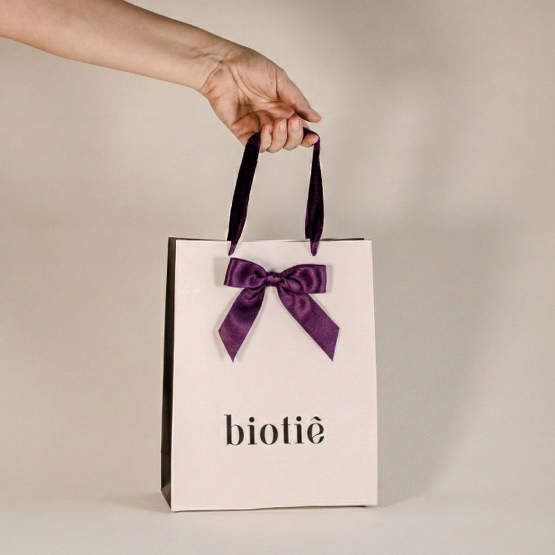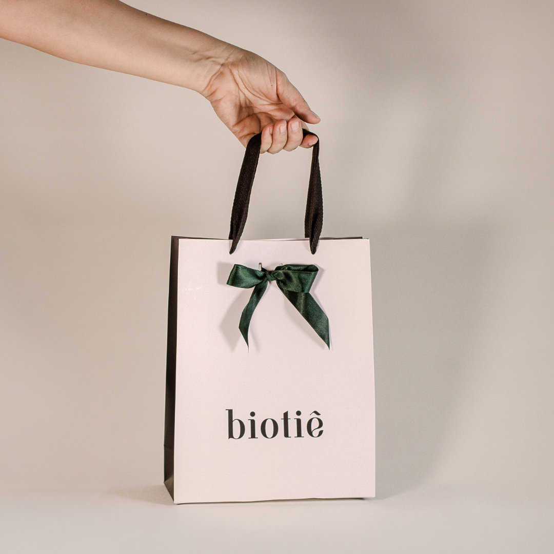 Sacola de papel com laço de fita de cetim verde musgo